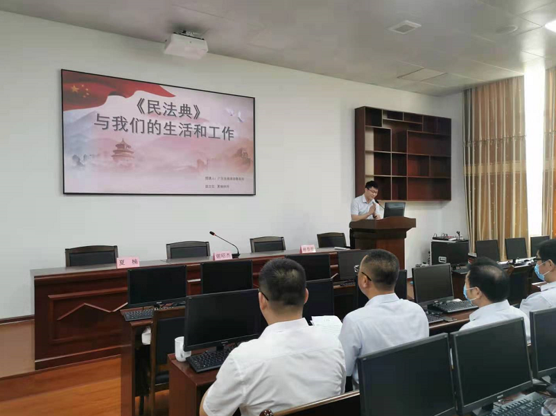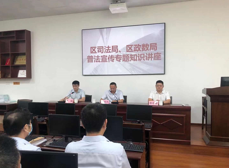为深入学习宣传习近平法治思想,认真贯彻依法行政要求,扎实推进法治建设,树立我区政务服务的良好形象,提高广大干部职工尊法学法守法用法的意识和能力,8月27日,揭东区政数局联合区司法局在区政数局三楼多功能培训室举办普法宣传专题知识讲座。会议由区政数局党组书记谢昭杰同志主持,特邀广东发展律师事务所夏楠律师主讲,区政务中心各服务区首席代表、区政数局全体干部职工五十多人参加。