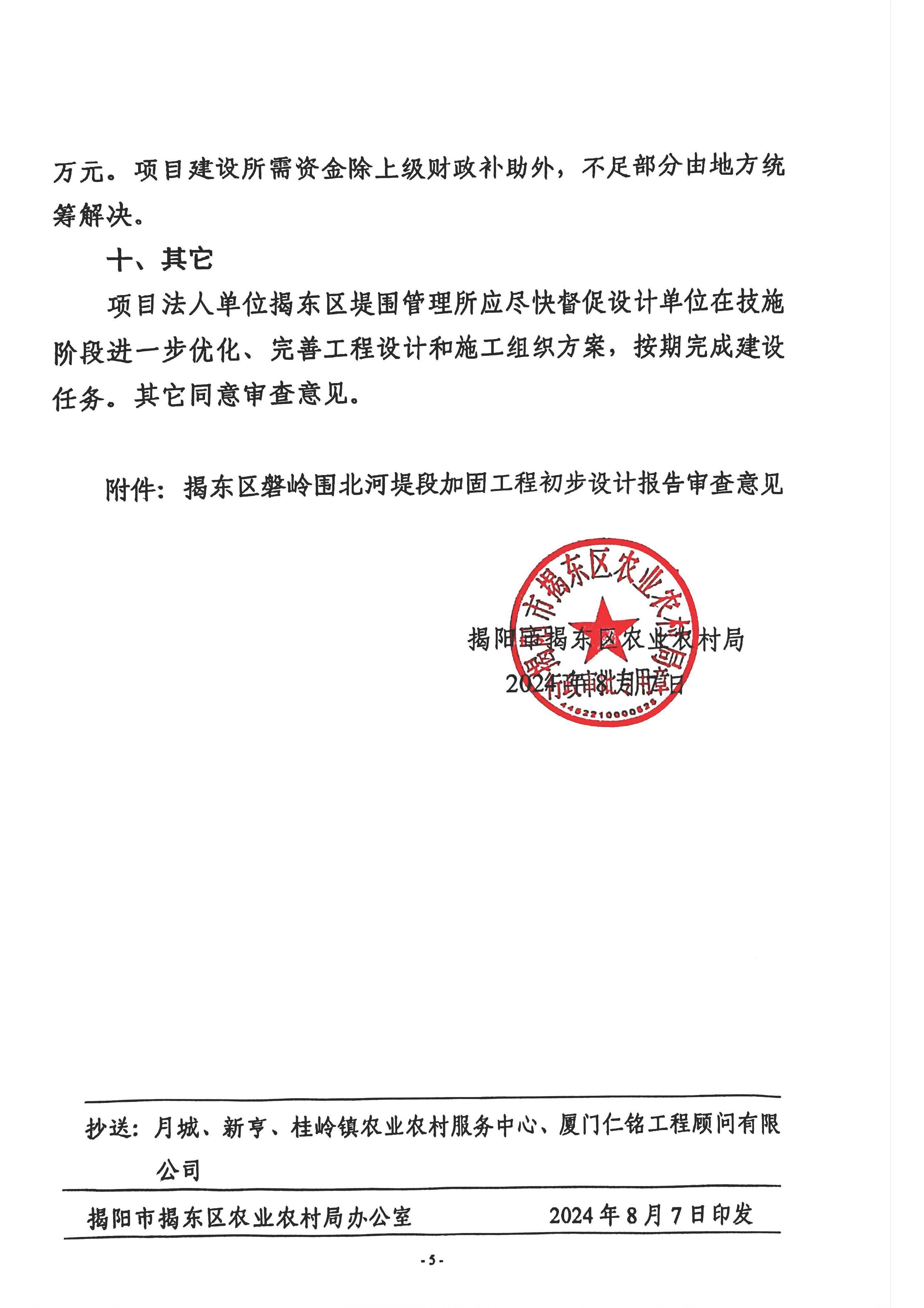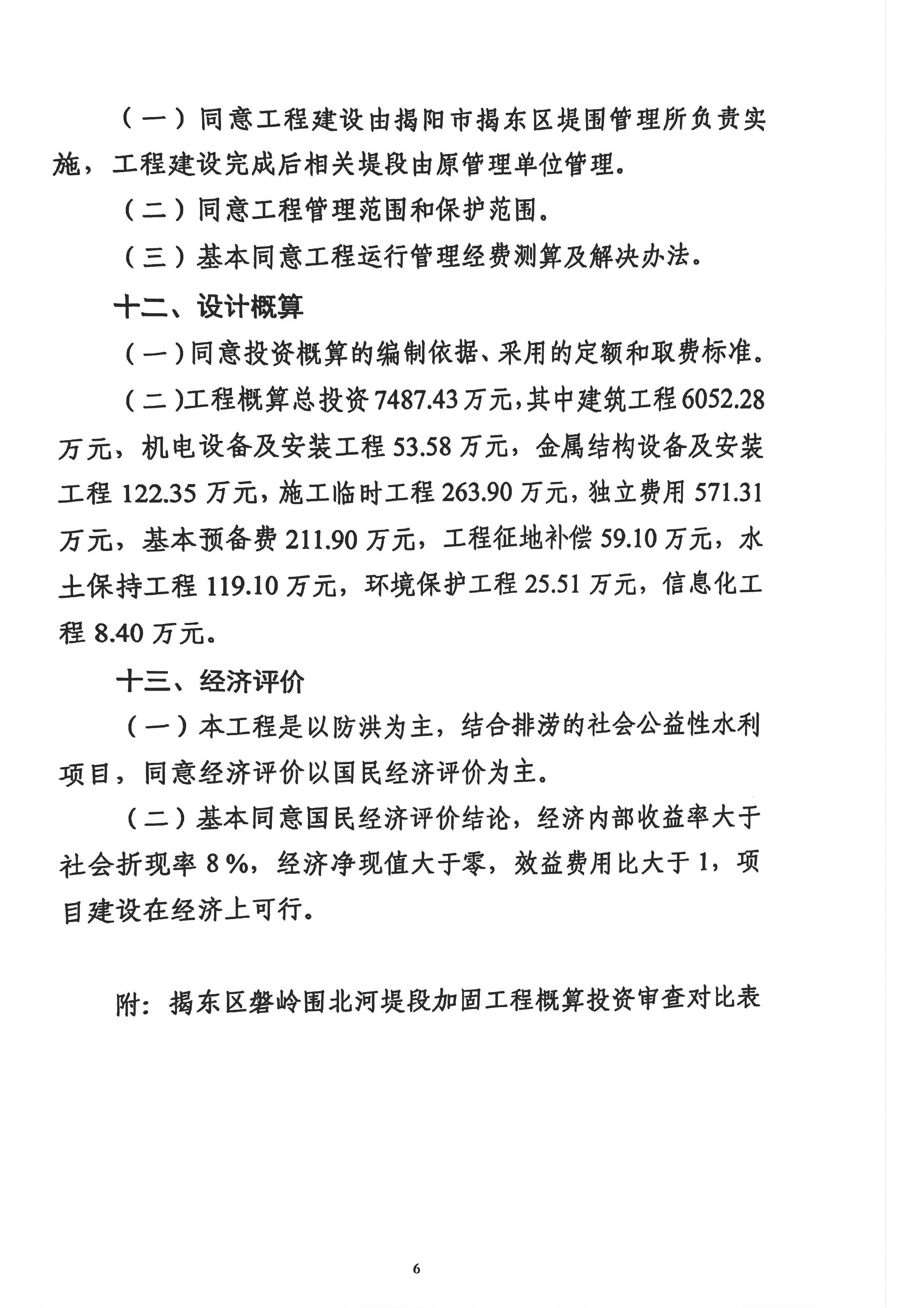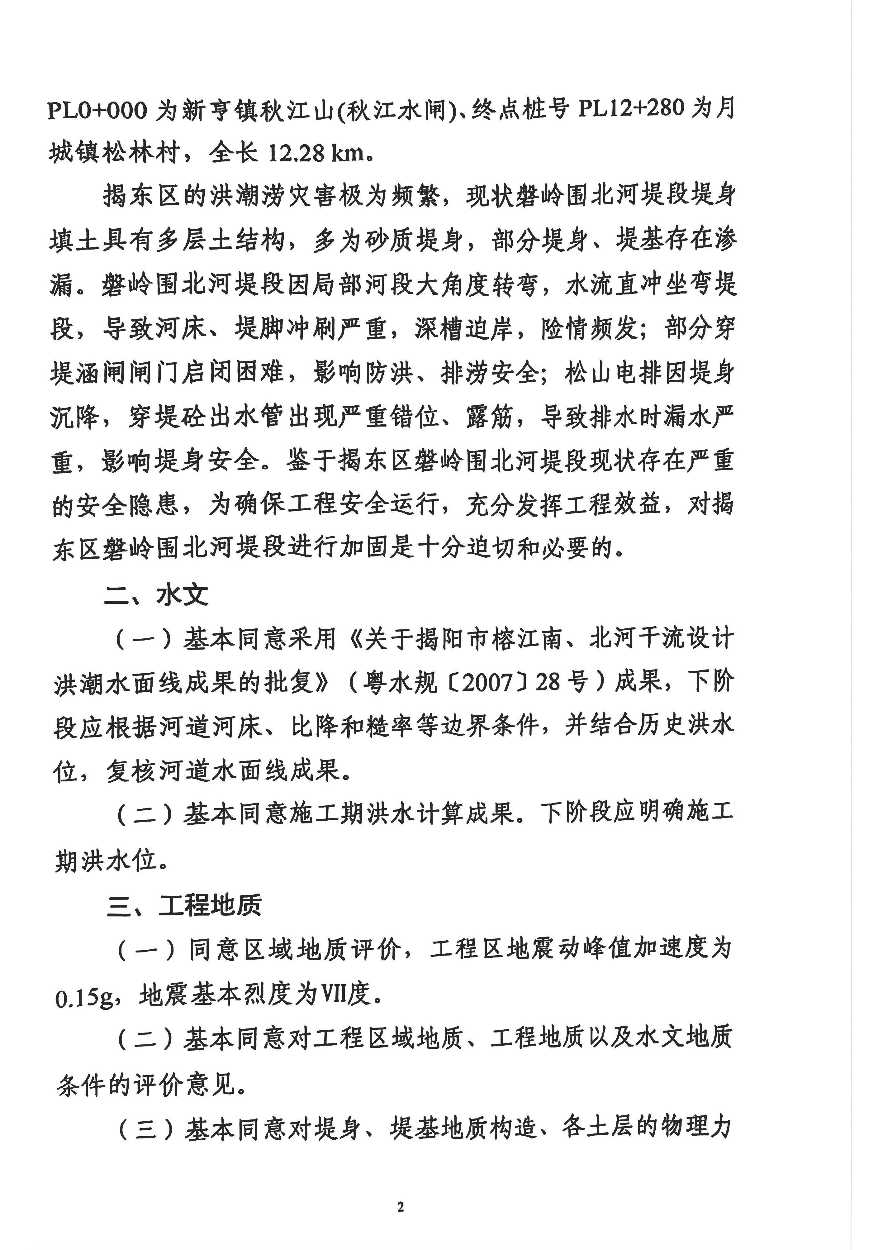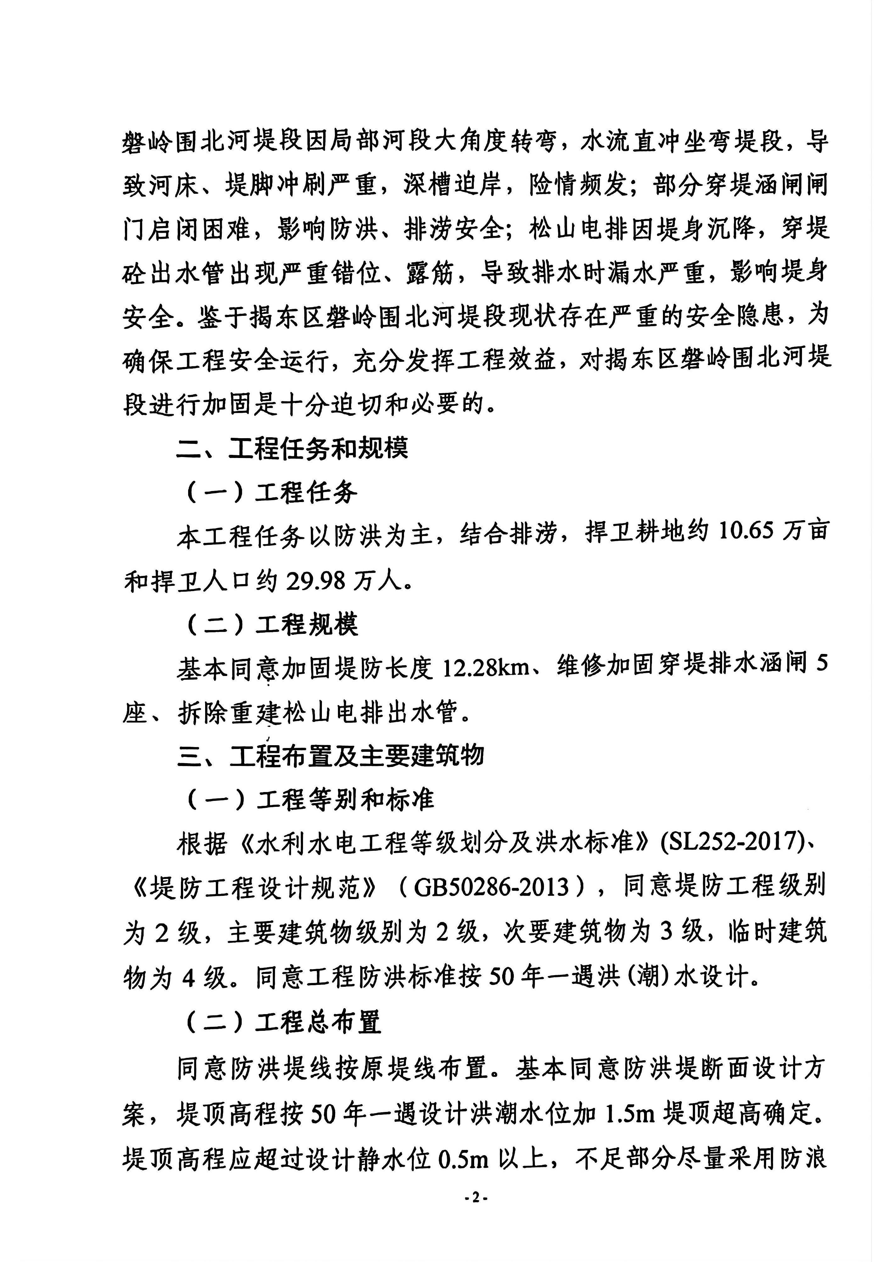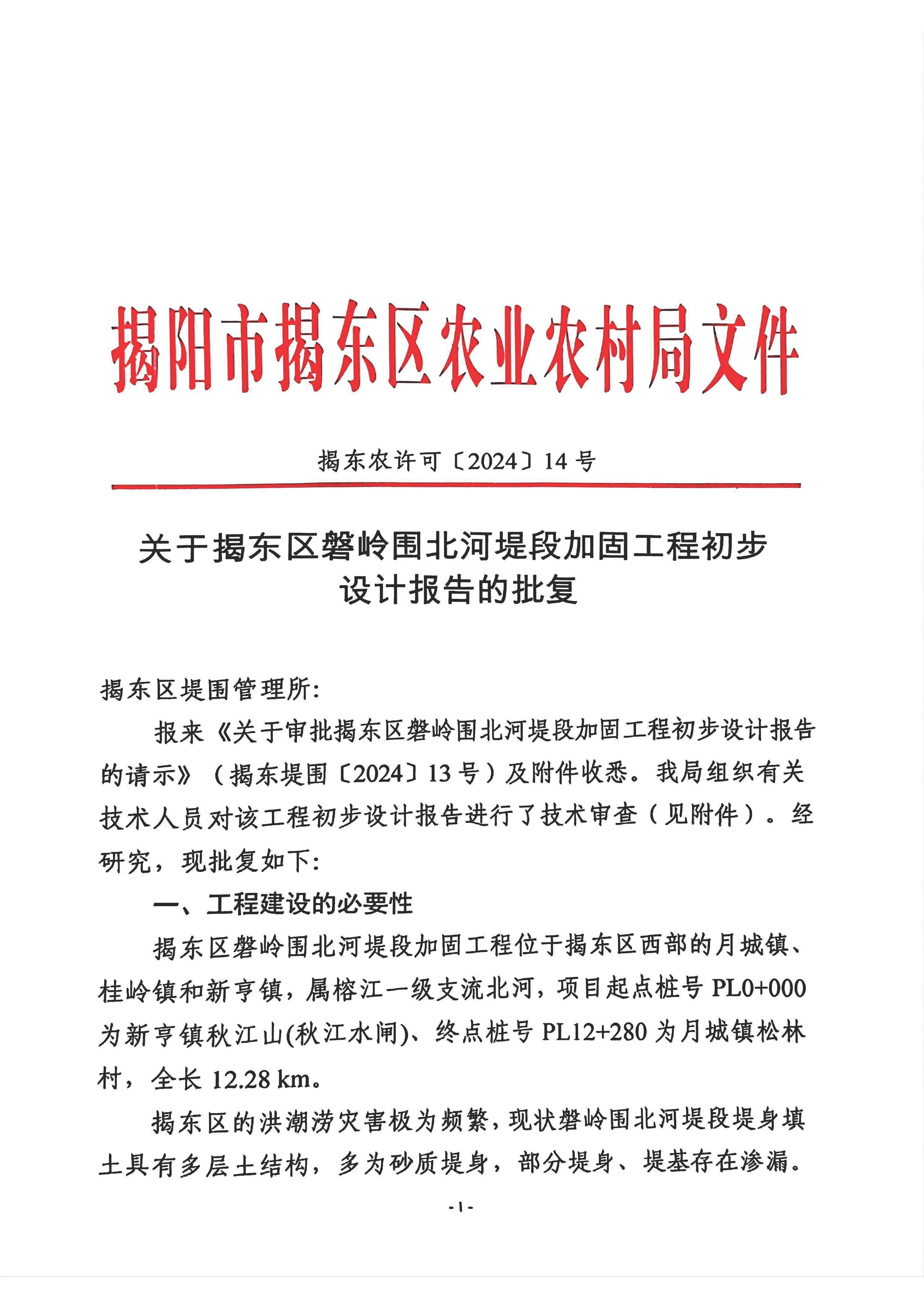 关于揭东区磐岭围北河堤段加固工程初步设计报告的批复