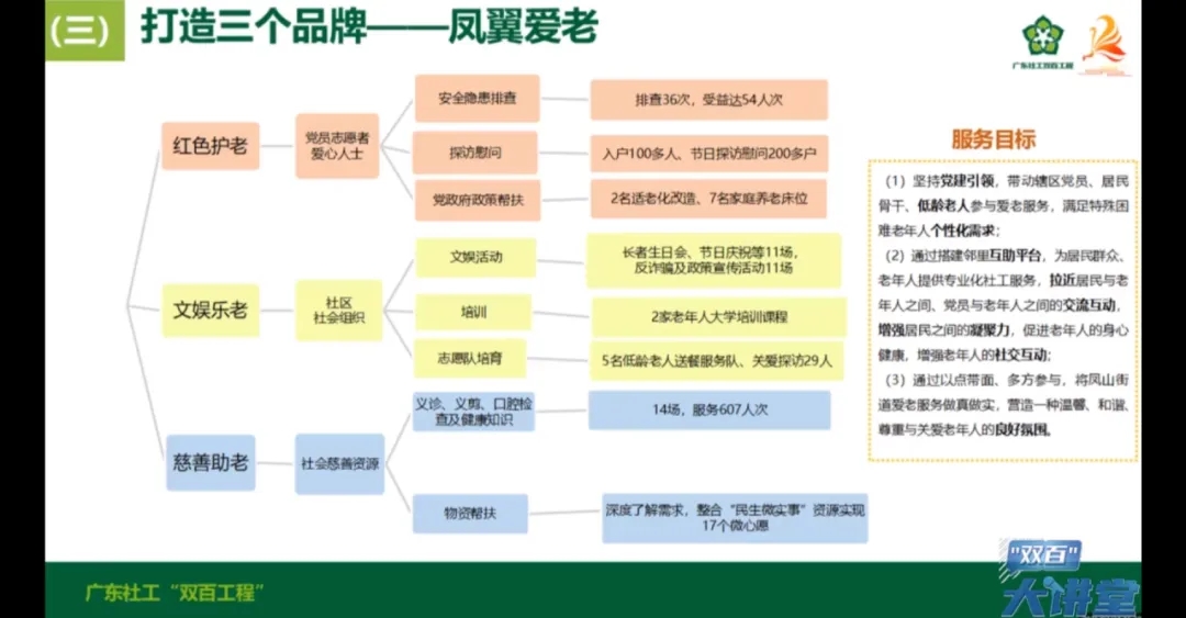 黄霞老师授课的题目是《实务案例书写与经验分享》,她以“实务案例书写九步曲”为主线,结合孤独症儿童服务案例,系统解析案例书写的核心要点。莫济娟老师以《珠海市香洲区凤山街道标杆社工站建设经验分享——创新实践与服务模式探索》为题,分享凤山街道社工站构建“一个中心、两个平台、三个品牌”服务体系的经验。