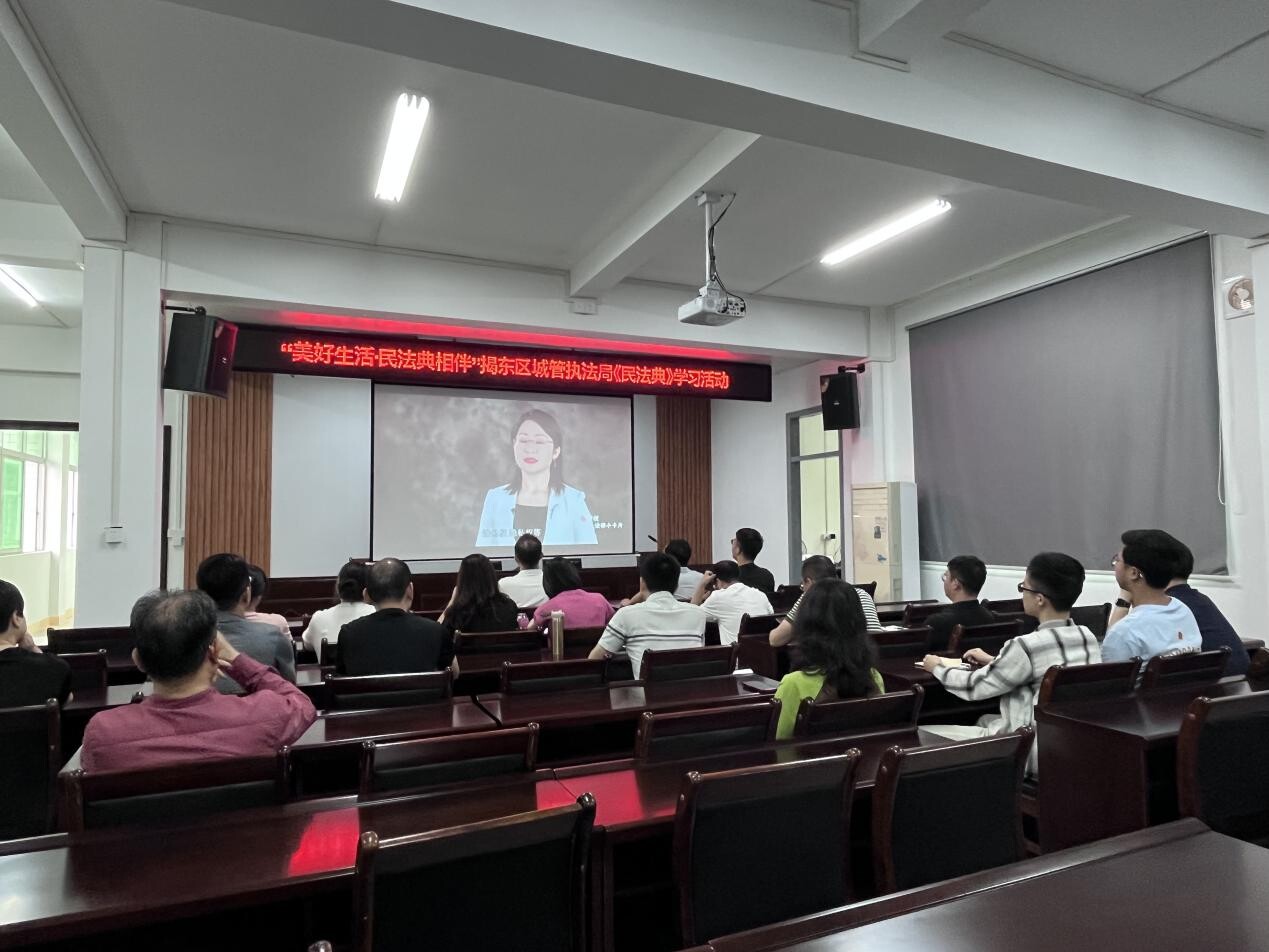 今年5月是第三个“民法典宣传月”,为贯彻落实“八五”普法计划,根据市城管执法局和区普法办《关于开展2023年“美好生活”民法典相伴主题宣传活动的通知》部署要求,我局认真开展“民法典宣传月”活动,一是组织局机关工作人员在局会议室参加“美好生活·民法典相伴揭东区城管执法局《中华人民共和国民法典》学习活动”;二是组织执法人员向沿街商铺发放《中华人民共和国民法典应知应会200问》宣传册,向商家铺主宣传《中华人民共和国民法典》有关知识,使商家铺主知道、了解民法典;三是通过我局门口的LED显示屏播放《中华人民共和国民法典》有关宣传视频,进一步向机关工作人员和市民宣传《中华人民共和国民法典》知识;四是号召全局人员积极参与民法典宣传月专项有奖答题活动。在答题过程中学习有关知识,进一步了解和掌握民法典。
