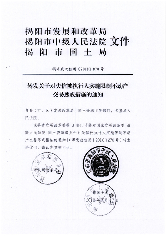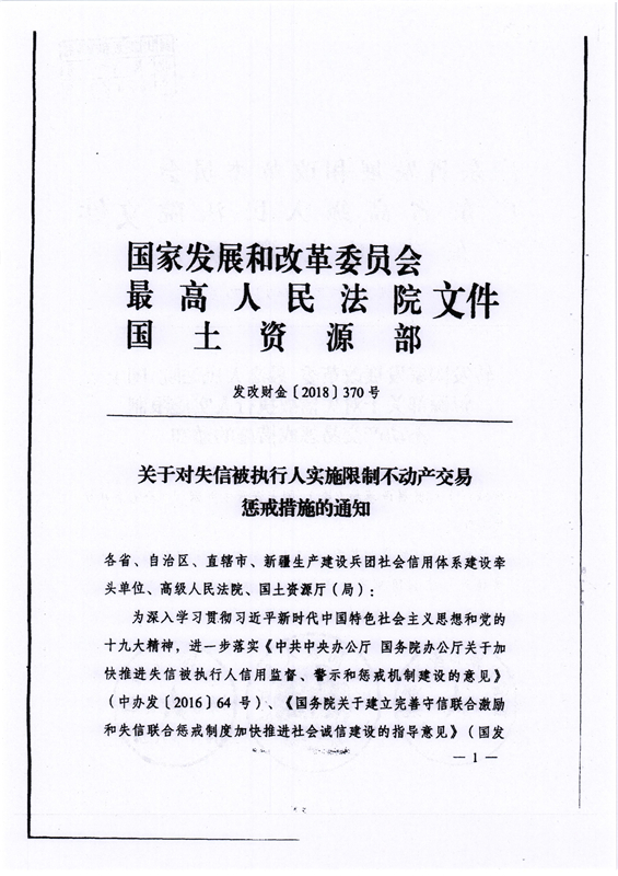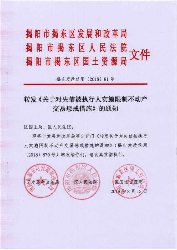 转发《关于对失信被执行人实施限制不动产交易惩戒措施》的通知