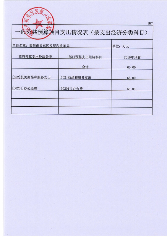 七、一般公共预算项目支出情况表(按支出经济分类科目)