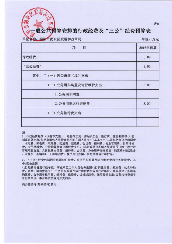 八、一般公共预算安排的行政经费及“三公”经费预算表