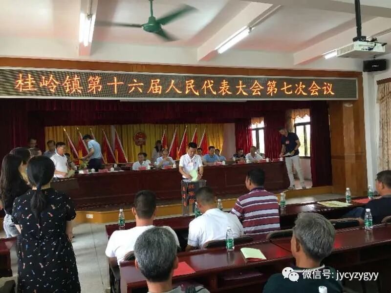会议投票选举刘树锋同志为桂岭镇人大主席、林贵洲同志为桂岭镇镇长、池丹锐同志为桂岭镇人大副主席、王小超同志为桂岭镇副镇长,新当选的四名镇领导班子成员向宪法进行了宣誓。
