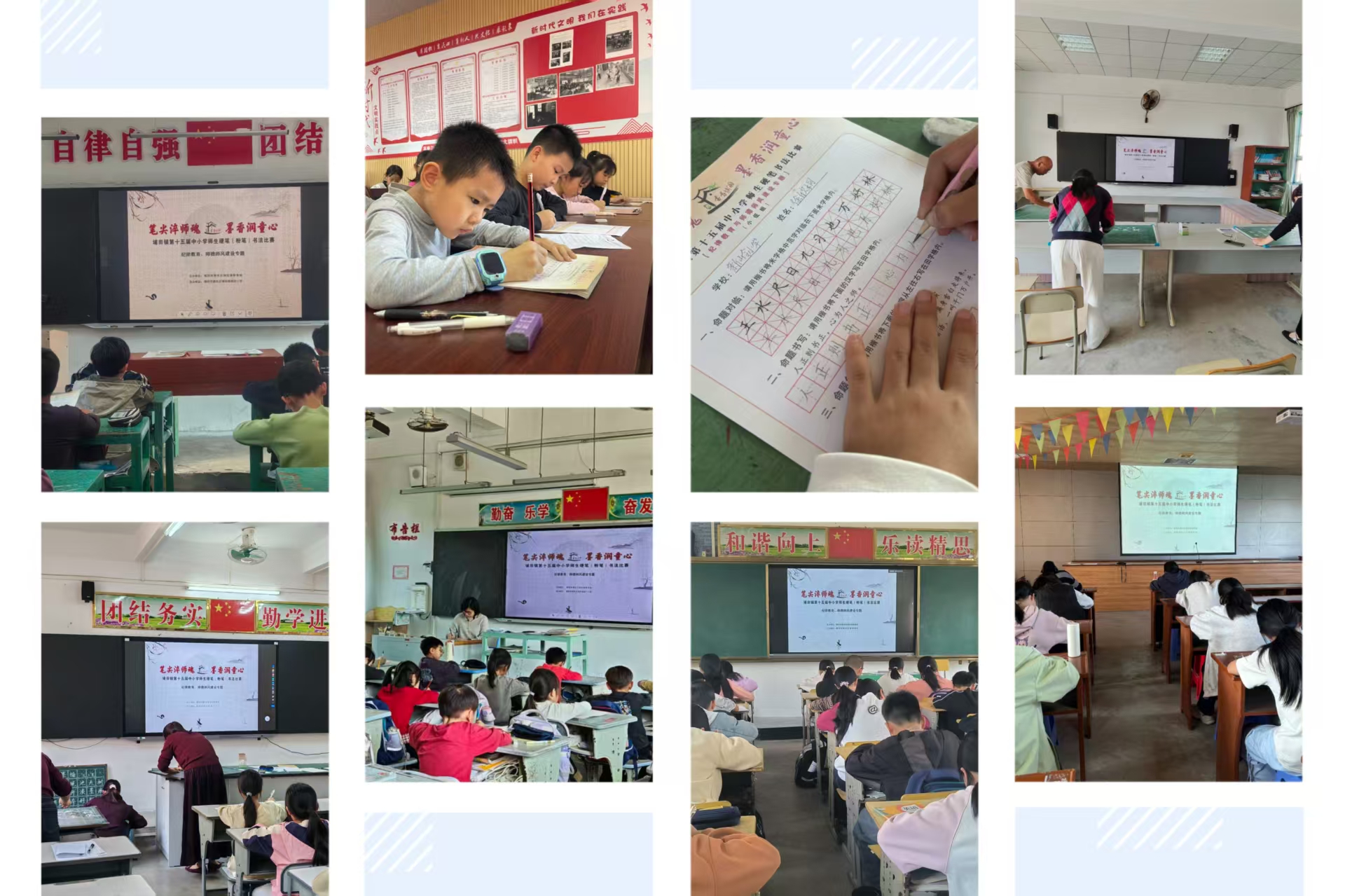 笔墨飘香润校园,师德清风沐人心。为加强纪律教育与师德师风建设,弘扬践行教育家精神,培育“四有”好老师,12月11日,埔田镇教育组举办了第十五届中小学师生现场硬笔(粉笔)书法比赛。全镇各校师生代表齐聚一堂,以笔为媒,书写师德师风建设精彩篇章,展现文化育人丰富成果。