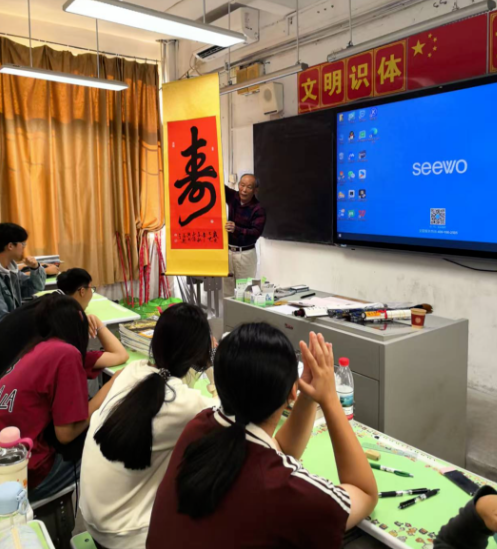 弦歌不辍,薪火相传。为赓续中华文脉,涵养青少年文化认同与审美情趣,让学子在笔墨纸砚的浸润中领略汉字之美、延续文化血脉,培养既有科学素养又具人文底蕴的时代新人,梅岗中学今年秋季开始在高一级、八年级开设书法课程,并特邀我市知名书画家、梅岗中学优秀校友徐少东先生重返校园进行授课。徐先生以一堂墨香四溢的启蒙课,为后学点亮翰墨情怀,实现了两代人之间温暖而庄重的文化碰撞。