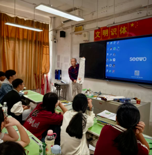 虽已年逾古稀,但徐少东先生精神矍铄。站在熟悉的讲台上,面对着一张张朝气蓬勃的脸庞,他动情地回忆起当年在梅岗中学求学的青葱岁月,讲述了书法引领他走上艺术之路的历程,并勉励同学们要珍惜在校时光,培养一门能够滋养心灵的爱好。“练字即练心,一笔一划间,磨炼的是耐心,沉淀的是气质。” 徐老师温和而有力的话语,深深打动了在场的每一位师生。