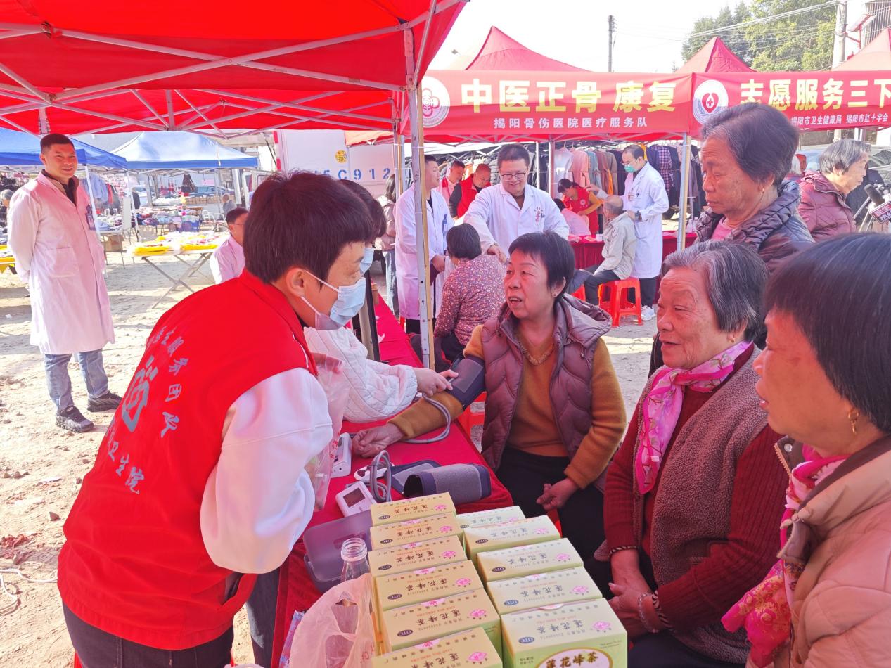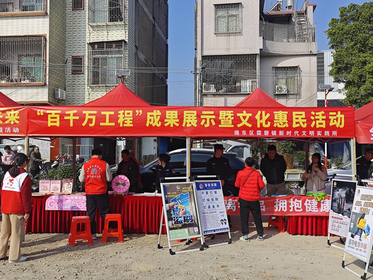为深入宣传贯彻党的二十届四中全会精神,推动“百千万工程”落地见效,切实将关怀与服务送到群众家门口,2026年1月24日,在新春来临之际,由市民政局、市卫健局、市红十字会、区红十字会、霖磐镇新时代文明实践所、市红十字无偿献血志愿者协会主办,市中心血站、揭阳骨伤医院、广东省盐业集团揭阳有限公司、区慢性病防治中心、霖磐镇卫生院、霖磐镇桂东村、东莞驻镇帮镇扶村工作队协办的“志愿服务三下乡”暨“百千万工程”成果展示文化惠民活动在霖磐镇桂东村开展,以实实在在的行动惠民生、暖民心、解民忧。