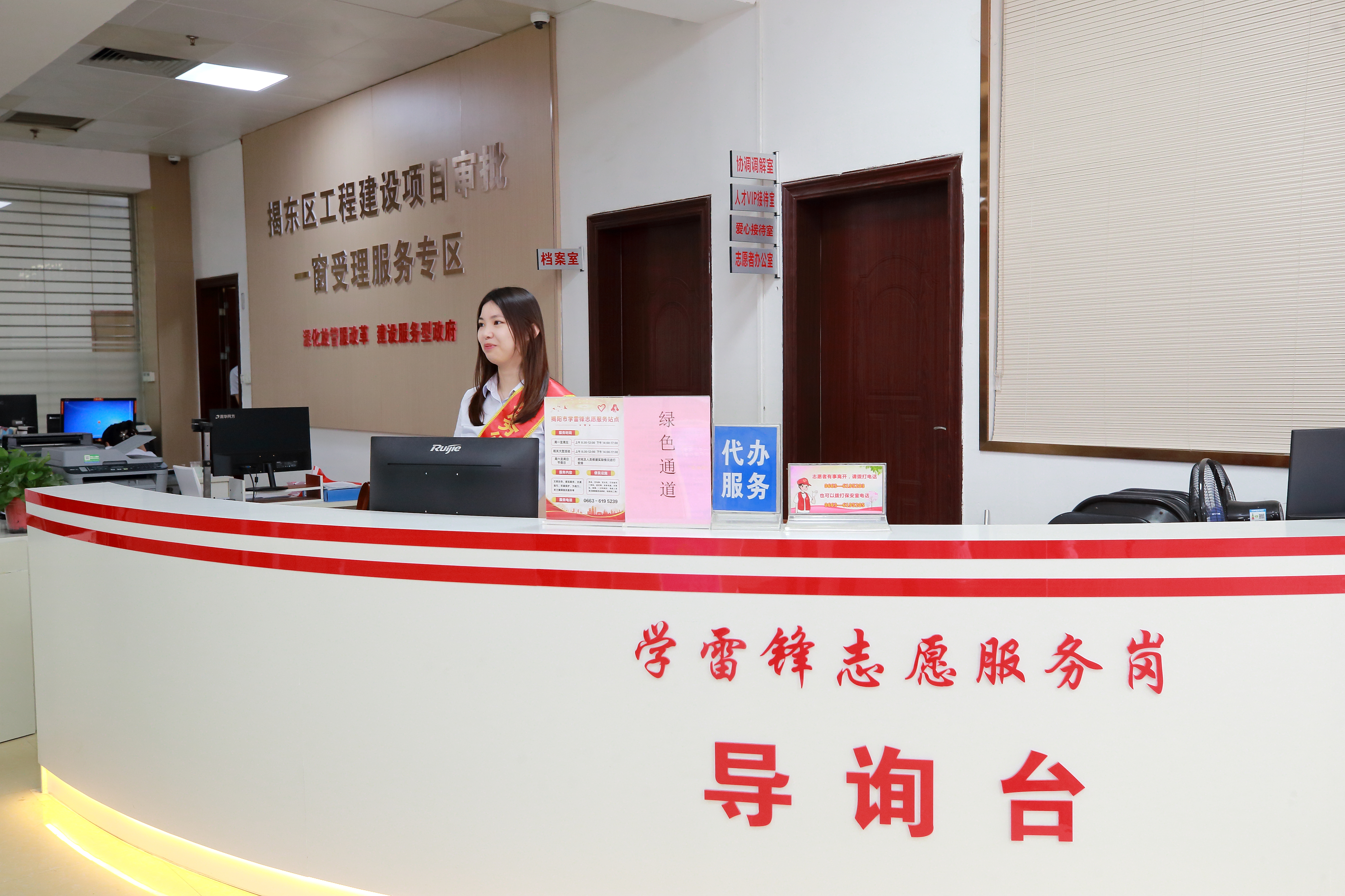 走进揭东区政务服务大厅,映入眼帘的是学雷锋志愿服务岗。导办员通过积极引导群众优先选择网上办、自助办,为群众办事节约宝贵时间。此外,导办平台还提供全程帮办代办服务,让群众办事更省心。