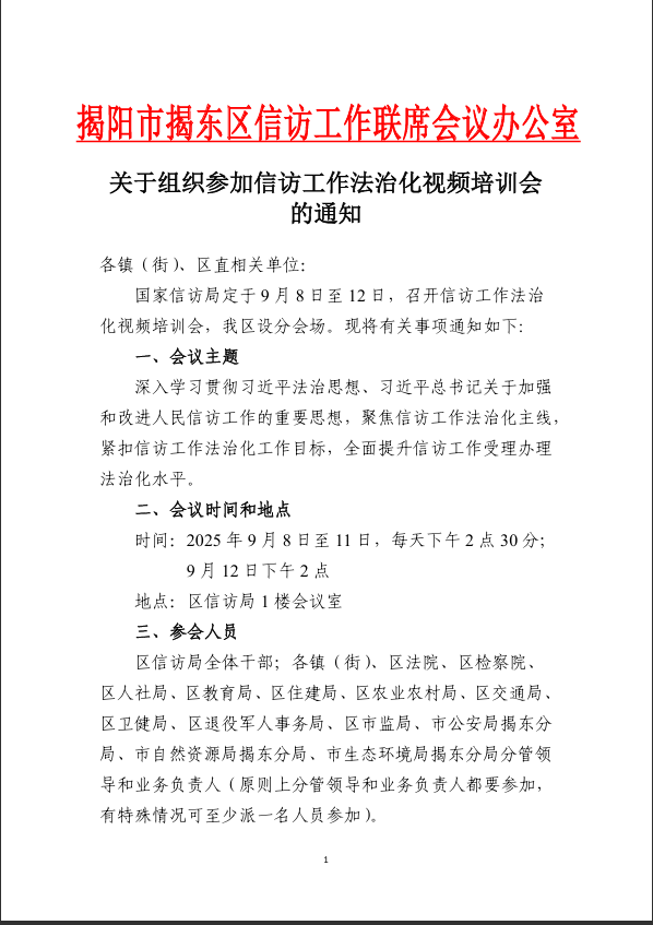 关于组织参加信访工作法制化视频培训会的通知