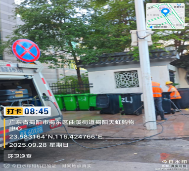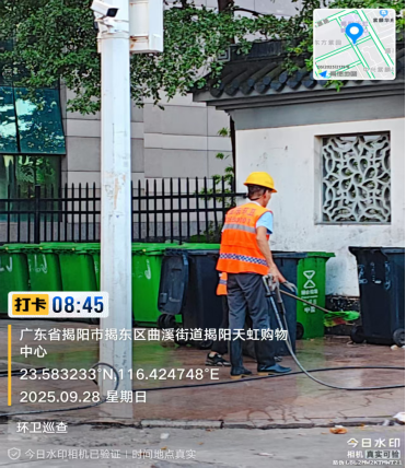 环卫工人在城市美颜工作中的辛勤付出:环卫工人头顶骄阳,迎战高温,不怕累,不怕脏,对沿街的垃圾桶进行大清洗。