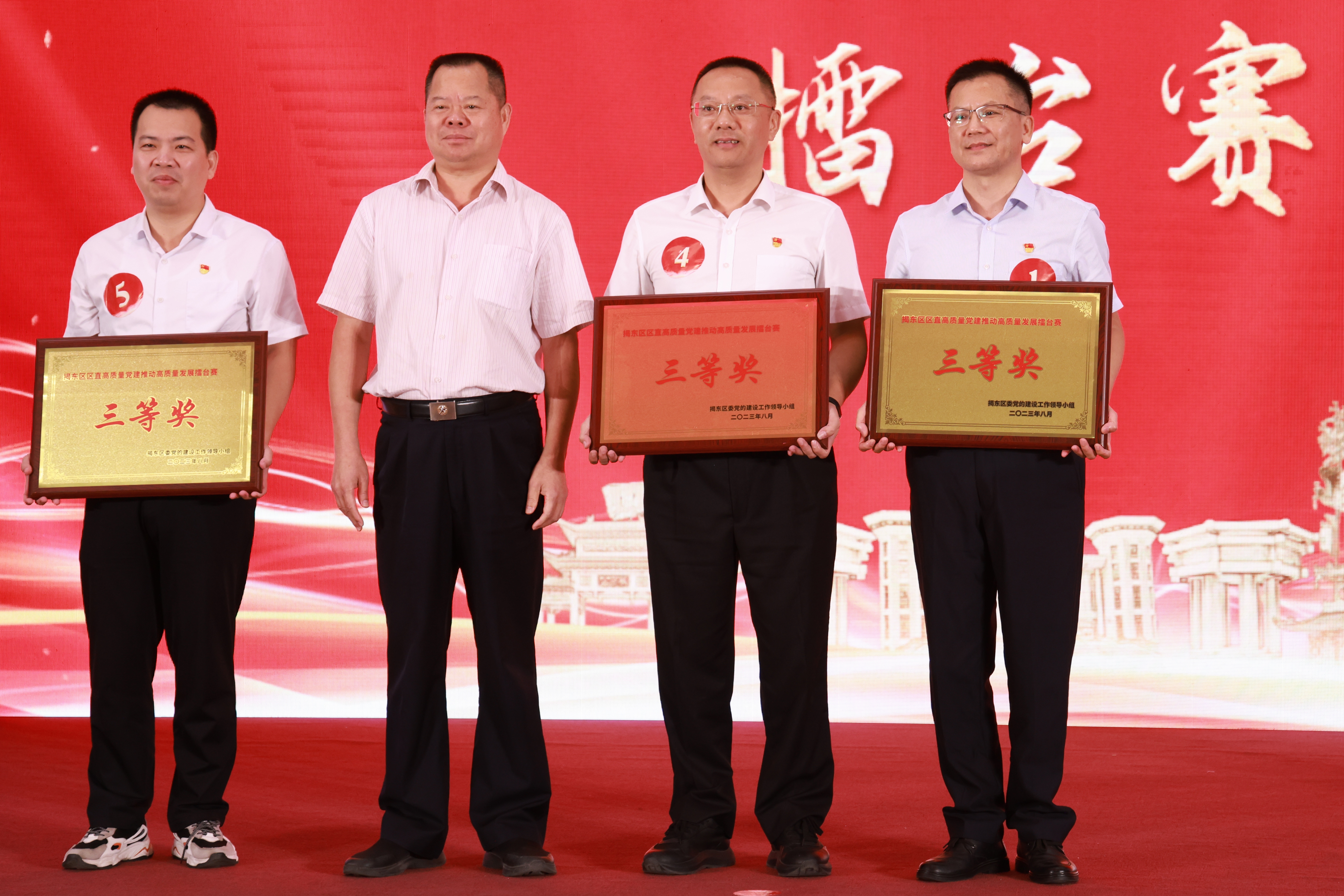 经过“陈述展示”“你选我答”两个环节的比拼,并结合实地测评综合得分,最终区财政局获得擂台赛一等奖,梁柱华为获奖单位颁奖;区教育局和税务局获得二等奖,许列群为获奖单位颁奖;区卫健局、市监局和政数局获得三等奖,陈妙龙为获奖单位颁奖。其他四个单位获得优秀奖,区委副书记蔡庆春为获奖单位颁奖。