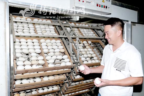 基地负责人正在检查种蛋孵化情况。杨小琪 摄