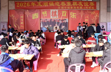 为丰富春节期间群众文化生活,弘扬中华传统象棋文化,营造欢乐祥和的节日气氛,2026年玉湖镇迎春象棋友谊赛在2月20日、21日举行。本次比赛由玉湖镇文化服务中心主办,玉湖象棋协会承办、玉联村草猛埔联社协办,玉湖冷链香港有限公司倾情赞助。