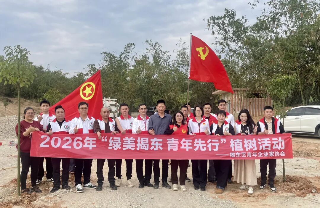 党旗领航,青春植绿!为深入学习贯彻习近平生态文明思想,落实党建带团建工作部署,3月17日,团揭东区委联合揭东区青年企业家协会、揭东农商银行,到埔田镇金东岭村开展2026年“绿美揭东 青年先行”植树活动。党员带头、团员跟上,大家挥锹铲土、扶苗浇水,以实干践行绿色发展理念,让“党建红”引领“生态绿”,充分彰显党团组织的凝聚力与战斗力,为绿美揭东、美丽乡村建设注入青春动能。 多方联动,汇聚青春合力 此次活动参与人员涵盖团区委全体干部职工、揭东农商行代表、揭东区青企协代表,以及相关镇党政领导、村“两委”班子成员和镇青年干部代表。大家热情高涨、分工协作,挖坑栽苗、覆土压实、细心浇灌,每一道工序都认真细致、配合默契。 新苗挺立,播撒绿色希望 活动现场合力种植樟树40棵、紫花风铃木150棵,一株株新苗迎风挺立,为春日的揭东增添勃勃生机。大家以实际行动播撒绿色希望,筑牢生态屏障,充分彰显政企同心、青年担当、共建共享的良好风貌。 久久为功,续写绿色篇章 生态建设重在长效,此次植树活动不仅是一次生动的生态文明实践,更凝聚起青年关心支持参与绿美建设的强大合力。下一步,团揭东区委将持续发挥引领服务联系作用,联动多方力量常态化开展植绿护绿、生态宣传、志愿管护等生态实践活动,引导广大青年争做绿色发展的践行者、生态文明的传播者、美丽家园的守护者,以青春担当与实干行动,为绿美揭东高质量建设持续贡献青春力量。