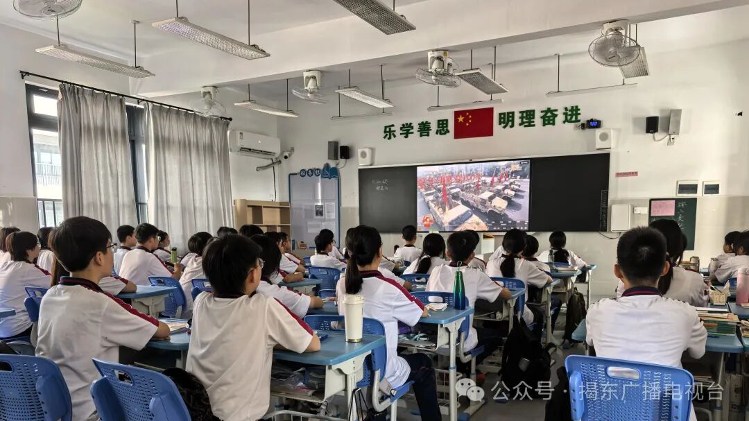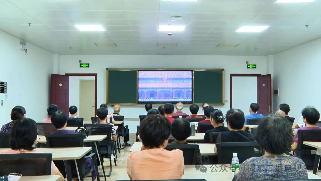 上午8点50分,在区委党校、区老干部活动中心内,党员干部与离退休老干部已端坐在荧屏前,满怀热忱等待大会启幕。大会现场,战旗猎猎,铁流滚滚,受阅将士威武雄壮接受检阅,令人振奋。大家凝神注目,感受祖国强盛,深情回顾中国人民浴血奋战的光辉历程,深切缅怀革命先烈的丰功伟绩,深刻体悟新时代强国强军的自信与力量。 现场不时报以热烈掌声,大家纷纷表示纪念大会令人热血沸腾、心生自豪,将以铭记历史,传承抗战精神为己任,将大会激发的爱国热情转化为实干担当,为揭东高质量发展添砖加瓦,为国家的繁荣发展贡献力量。 黄培通 揭东区关工委副主任 刚才看了阅兵仪式,我心潮澎湃,热血沸腾,心情格外激动。作为一名关工委的老同志,我亲身经历过国家从艰难岁月到繁荣富强的历程。阅兵场上,一支支威武之师步伐铿锵、装备精良,展现出新时代中国军队的昂扬风貌,让我深感震撼和自豪。阅兵不仅是国力的展示,更是对历史的致敬。抗战胜利来之不易,是无数先烈用鲜血和生命换来的。如今山河无恙,国泰民安,这正是对他们最好的告慰。看到年轻一代军人意气风发、斗志昂扬,我深深感受到红色基因的传承和延续。 作为关心下一代工作者,我更感责任重大,今后将继续发挥余热,引导青少年铭记历史、珍惜当下、奋斗未来,让爱国情、强国志在年轻一代心中扎根,为祖国的未来注入更强劲的力量,为中华民族的伟大复兴作出应有的贡献。 谢春雄 揭东区直属老干部支部委员会党员 心情特别激动、特别振奋人心,咱们中国通过80年来的发展,已经是从站起来、富起来,到强起来。咱们很多都是世界一流的战备武器、军用武器。英雄的人民军队雄赳赳、气昂昂接受检阅,非常振奋人心,也值得咱们中国人骄傲和自豪。 9月3日上午,我区多所学校也组织师生收看大会。在揭东第一初级中学,全体师生集中观看纪念中国人民抗日战争暨世界反法西斯战争胜利80周年大会实况,共同见证了这一庄严时刻,现场洋溢着浓厚的爱国情。 大家目不转睛地盯着屏幕,认真观看每一个环节。整齐划一的方阵,新一代武器装备,集中亮相,气势宏大、震撼人心的场景让大家为祖国的日益强大感到骄傲自豪、热血沸腾。 此次观看活动不仅让师生们感受到了国家的繁荣富强,也激发了大家的爱国热情和奋斗精神。许多学生表示,将以更加饱满的热情投入到学习中,为祖国的繁荣贡献自己的力量。 张志杰 揭东区第一初级中学学生 观看了这次阅兵式,我的内心充满了自豪与激动,这不仅是一场视觉盛宴,让人目不暇接,更是一场心灵的洗礼,让我感受到了祖国的强大和全国各族人民的团结一心。当看到鲜艳的五星红旗迎风飘扬,我的内心更加坚定了对祖国的热爱和对未来的信心。我相信在中国共产党的领导下,在全国各族人民的共同努力下,我们的国家一定会更加繁荣昌盛。 早上,记者巡城发现,全区各地掀起了收看大会直播的热潮,不少企业、市民早早守在电视机、电脑前观看直播。在城区的一家培训机构里,员工们围坐在一起观看现场盛况,共同接受爱国主义教育,重温历史,缅怀先烈。 这场一个多小时的纪念大会,集中展示了我国国防和军队建设的辉煌成就,也让每一位市民心潮澎湃、无比激动。作为普通市民,将倍加珍惜今天的幸福生活,勇于担当社会责任,让爱国情怀融入企业文化,为社会培养更多人才。 陈宁儿 揭东优加文化员工 今天组织我们的员工一起观看盛大的阅兵仪式,看到我们的国家如此强大,大家都十分激动。这不仅是一次观看活动,更是一堂生动的爱国主义教育课和一次深刻的团队精神洗礼。我们以此来增强大家的民族自豪感和团队凝聚力,感恩国家,珍惜当下。让爱国情怀融入我们企业的文化,激励我们努力前行,为社会培养更多优秀人才。
