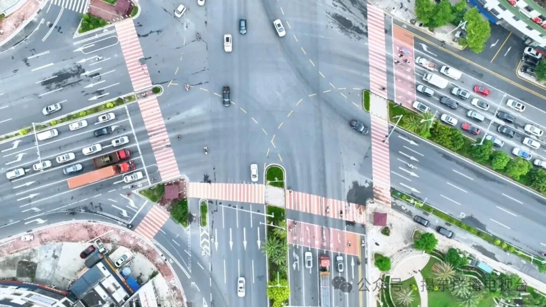 阶段来,作为G539“揭东区三产融合风貌带”曲溪街道段与G206“揭东区宜居宜业宜商风貌带”曲溪街道段建设工程项目承建方,揭阳市广投建设工程有限公司系统开展绿化景观营造、灯光夜景打造、人行道优化、店招升级及建筑外立面改造等五大工程,着力构建“功能+景观+文化”复合型风貌带。其中,交通运输局大圆盘既位于两条景观带的交叉口,也是其核心节点。 揭阳广投揭东区风貌带建设项目经理 郑以灿:其中,作为区域交通枢纽的大圆盘改造尤为关键:通过路口扩容改造,累计拓展使用地约2000平方米,创新实施“道路拓宽+右转专用道+物理隔离”组合方案,新增11条进口车道并优化右转通道设置,配套标准化交通栏杆分隔,有效提升路口通行效率。